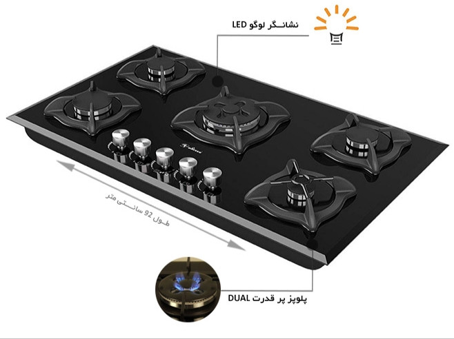 توان شعله پلوپز: 3.8 کیلو وات توان شعله بزرگ: 2.8 کیلو وات توان شعله متوسط: 1.8 کیلو وات توان شعله کوچک: 1 کیلو وات