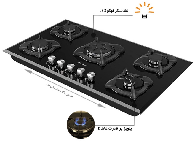 توان شعله پلوپز: 3.8 کیلو وات توان شعله بزرگ: 2.8 کیلو وات توان شعله متوسط: 1.8 کیلو وات توان شعله کوچک: 1 کیلو وات